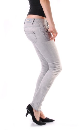 Grau gefleckte Röhrenjeans Hüftjeans im Used Look Größe 42