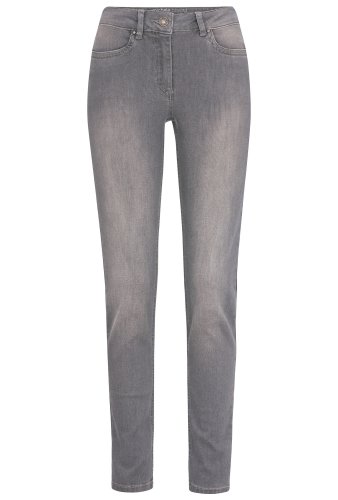 Modische Skinny-Jeans von michèle boyard in Grau. Eng geschnittene Röhre mit normaler Taillenhöhe und schmalem, zulaufendem Bein. Die perfekte Hose zum Tragen von Stiefeln. Bequeme Passform durch Stretch im Gewebe. Am Oberschenkel und Gesäß mit leichter Waschung in Used-Optik.