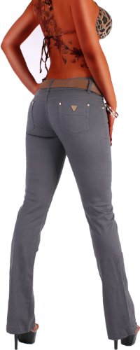 Damen Hüft Jeans Schlag Hose 4 Colors mit Gürtel 40 L Grau Feature