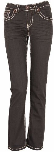 Damen Jeans Destroyed Breite Dicke Naht Designer Low Cut Five Pocket Grau Dunkel, Größe 44 Feature